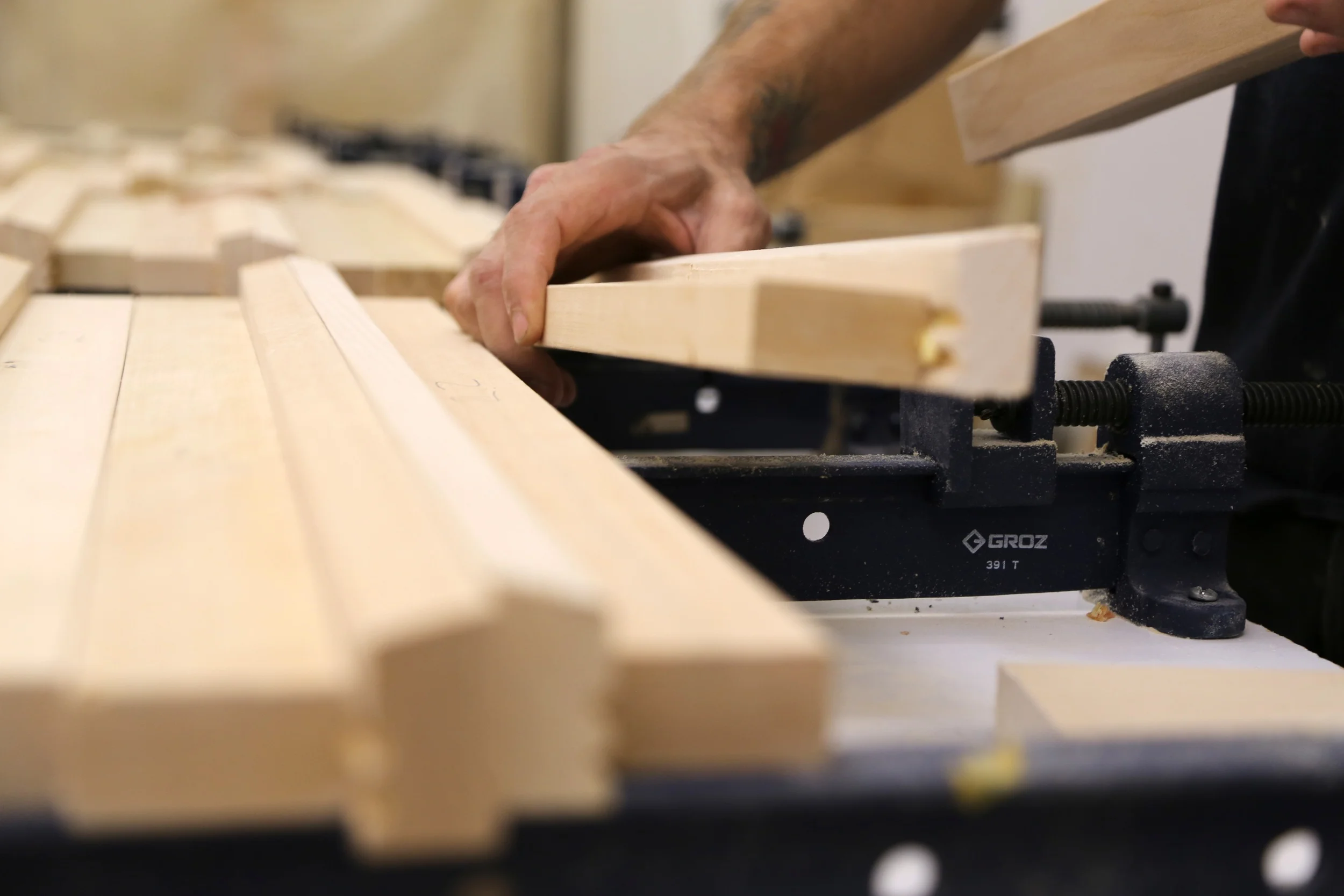 All of our products use kiln dried basswood. Most stretcher bars use a two part construction with meshed-tooth joinery that ensures dimensional stability for museum-quality stretchers and strainers. Lip sizes include 1 1/8, 1 1/2, 2 and 2 1/2 inches deep (custom depths up to 3" available for an additional cost.)